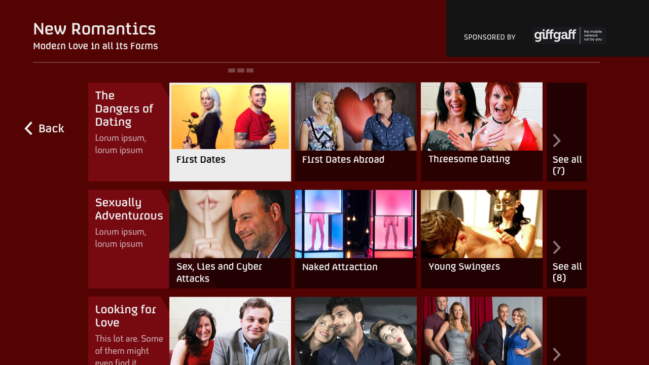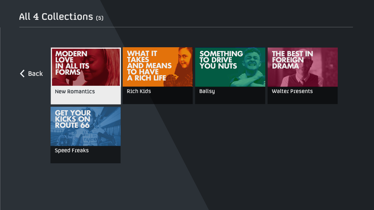The re-designed App featured consistent UXD across all TV platforms, improved usability and performance, introduced personalisation, editorial collections and a totally new look & feel aligned with Channel 4’s unique and irreverent brand personality.